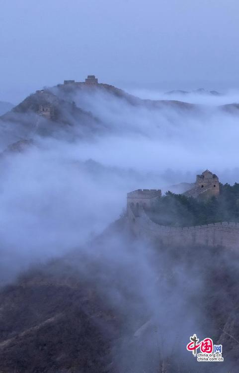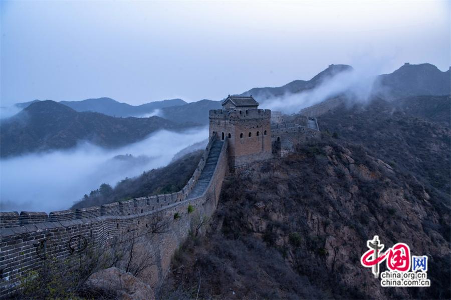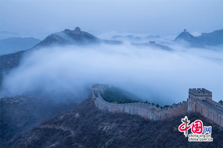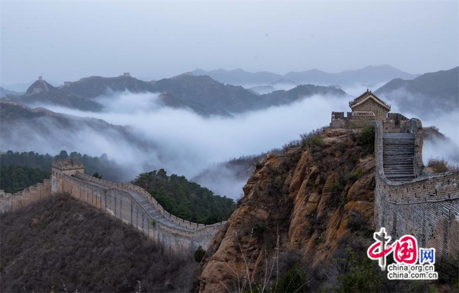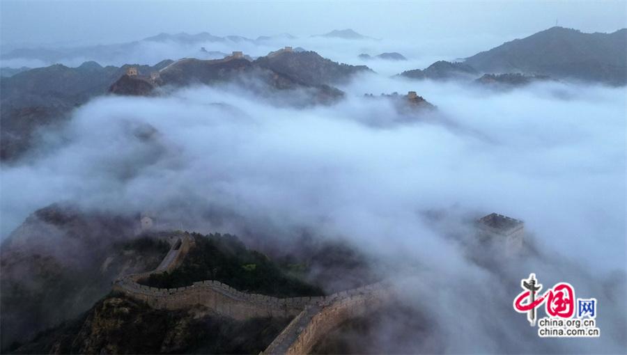 春風輕撫金山嶺, 茫茫云海與蜿蜒長城相互映襯,構成了一幅幅壯美畫卷。