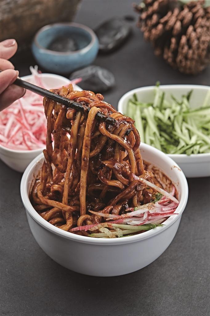 和老北京炸醬面相比,蘭州炸醬面雖然少了時令蔬菜,但是肉醬分量很足,這絕對代表了蘭州人的實(shí)在和“碳水之都”的誠意。一口裹上醬汁的面條可以直接“擊碎”饑餓。蘭州人做炸醬用現(xiàn)成的面醬加上肉末、蔥等作為主料,再配以農(nóng)家常見的蔬菜丁,把肉末上鍋烹炒后放入蔥末,再添加調(diào)料炒到半熟加入適當(dāng)?shù)乃每旎馃酰ㄡu中加淀粉勾芡使炸醬變得柔滑濃香,再配上筋道的手工拉面澆上炸醬,加上辣椒油,淋一點(diǎn)醋那就濃香四溢了。
