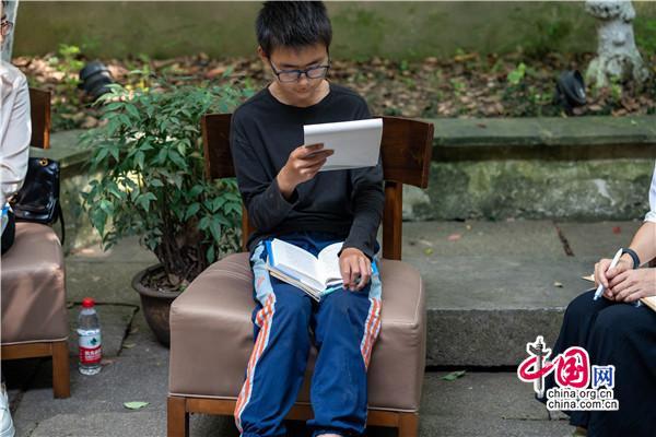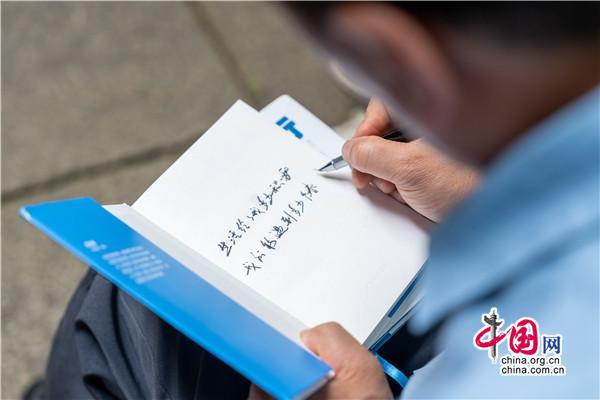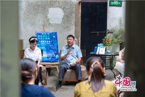 在書(shū)院小院里,一位腳穿布鞋,親切隨和,滿臉笑容的男士正在分享,從《趕時(shí)間的人》創(chuàng)作心得,到新書(shū)《低處飛行》作品朗誦和創(chuàng)作故事點(diǎn)滴,還有撿破爛、送外賣的人生經(jīng)歷,深情的講述,傳遞的是始終不曾改變的對(duì)寫(xiě)詩(shī)的執(zhí)著與熱愛(ài)。