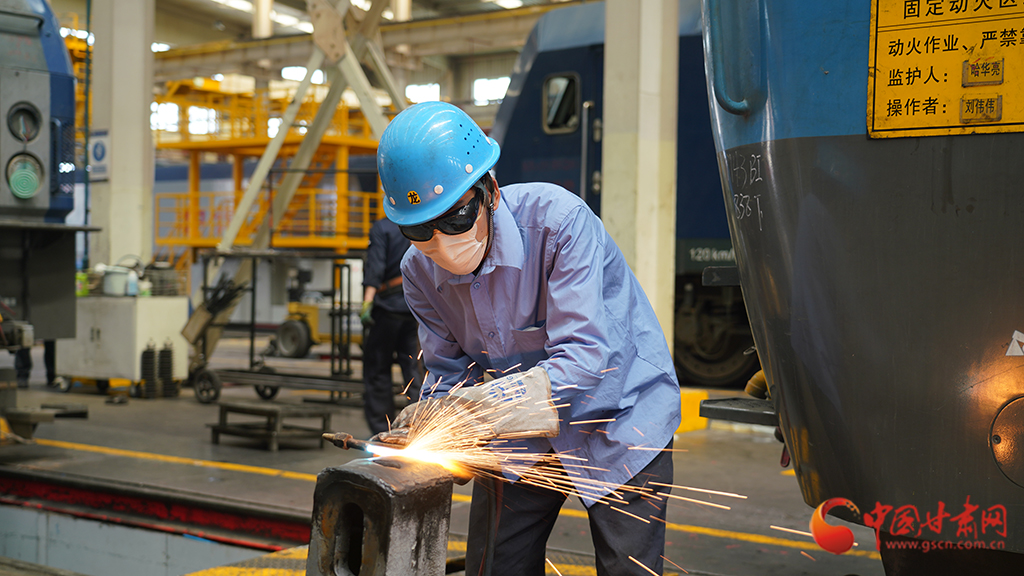 身穿長(zhǎng)袖工作服、腳蹬勞保鞋、頭戴藍(lán)色安全帽,手上戴著電焊專(zhuān)用防護(hù)手套……蘭州鐵路局蘭州西機(jī)務(wù)段西整備車(chē)間電焊班組內(nèi),鐵路“焊將”劉偉偉在火花四濺、煙霧彌漫的工作臺(tái)位間來(lái)回穿梭,一點(diǎn)一點(diǎn)對(duì)機(jī)車(chē)車(chē)鉤鉤尾墊進(jìn)行焊修。