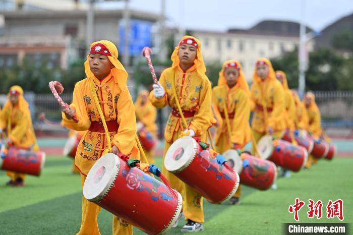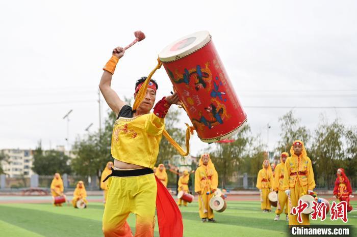 9月9日,甘肅省蘭州市皋蘭縣三川口學(xué)校學(xué)生練習(xí)蘭州太平鼓。近年來,皋蘭縣將國家級非物質(zhì)文化遺產(chǎn)蘭州太平鼓納入各中小學(xué)課后服務(wù)內(nèi)容,成立中小學(xué)太平鼓隊13支,定期邀請非遺傳承人走進(jìn)校園,進(jìn)行傳統(tǒng)文化授課和培訓(xùn),使學(xué)生親身感受中華優(yōu)秀傳統(tǒng)文化的魅力。蘭州太平鼓舞已有六百余年的歷史,素有“天下第一鼓”之稱,2006年被列入中國第一批非物質(zhì)文化遺產(chǎn)名錄。中新社記者 九美旦增 攝
