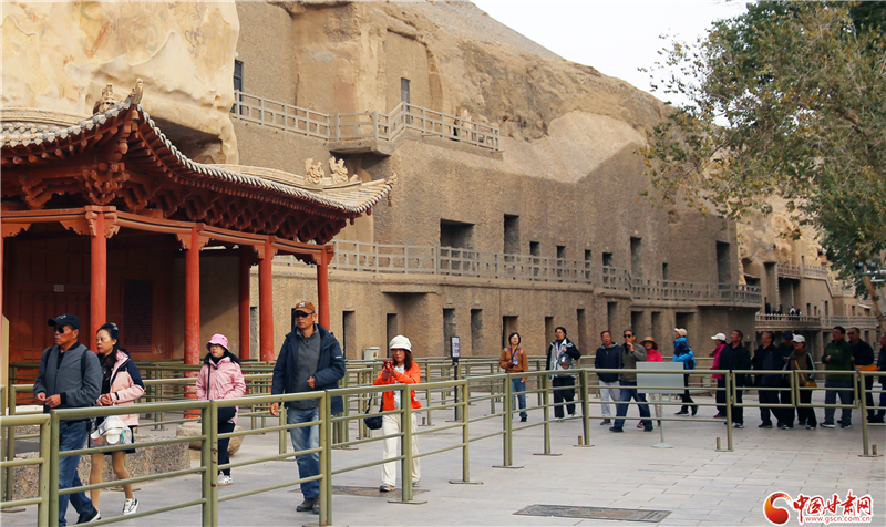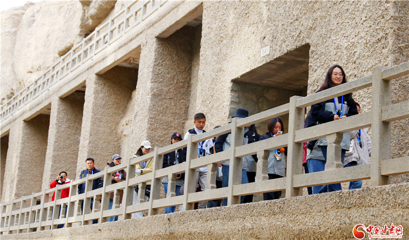 10月20日,由中央網信辦網絡傳播局指導,甘肅省委網信辦、甘肅省文物局主辦,中國甘肅網、快手甘肅承辦的“千年石窟 匠心傳承”網上主題活動來到敦煌,來自中央及省市縣各級網絡媒體記者、商業(yè)平臺編輯、網絡名人等組成的采訪團走進莫高窟,近距離感知佛教文化、全方位了解文化遺產保護,續(xù)寫甘肅石窟故事。