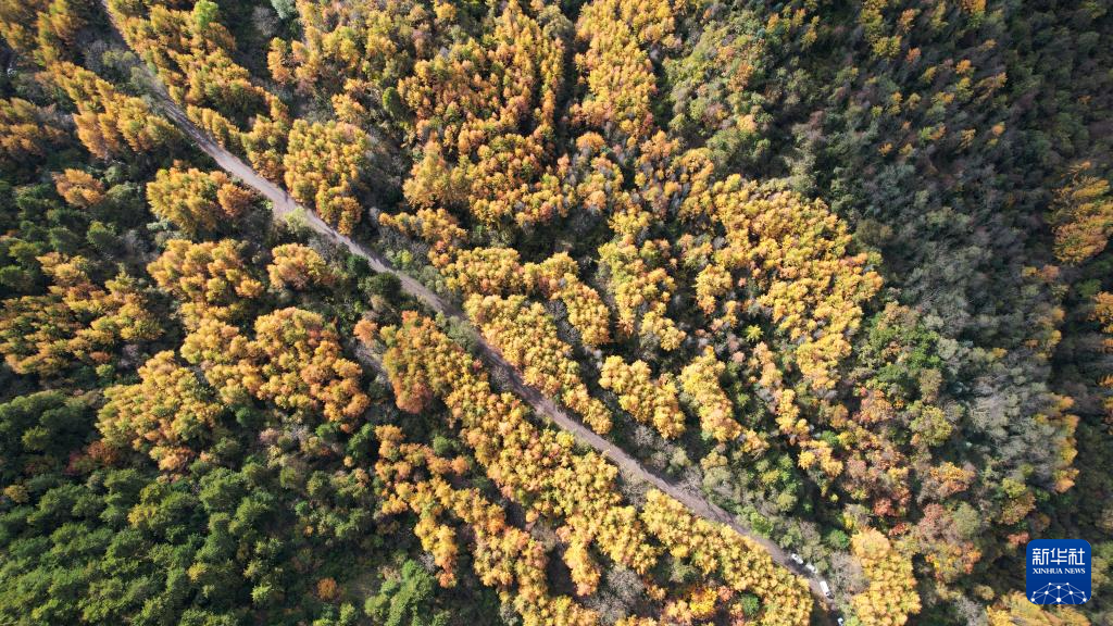 這是11月2日拍攝的麥積山石窟秋景(無(wú)人機(jī)照片)。新華社記者 陳斌 攝