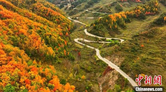 甘肅隴南公路大片 冬日上演“秋色”頌