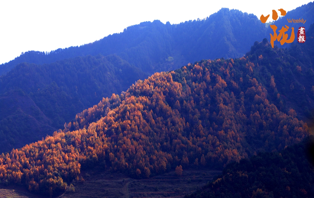 在陽光照耀下,中梁山披上多彩盛裝,山川、溝壑層林盡染,美景如畫。