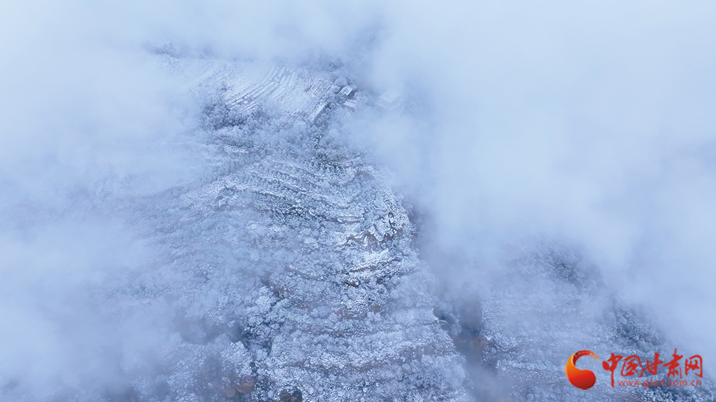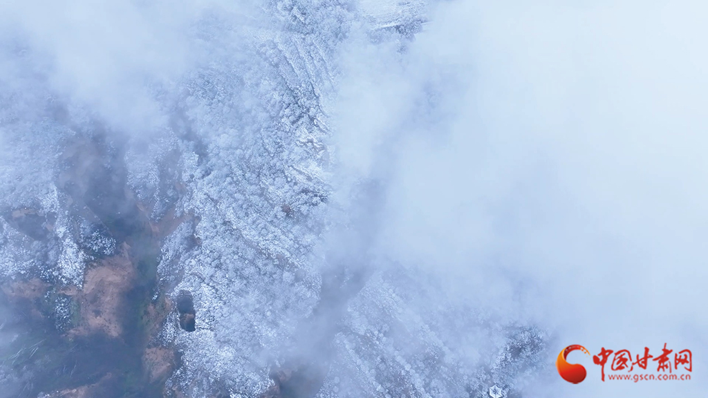 從高空俯瞰,云海之中霧凇景觀蔚為壯觀,連綿起伏的山巒美如仙境。縹緲的云霧似輕紗流淌涌動,漫過靜謐的山林,好似一幅如夢似幻的水墨畫卷。