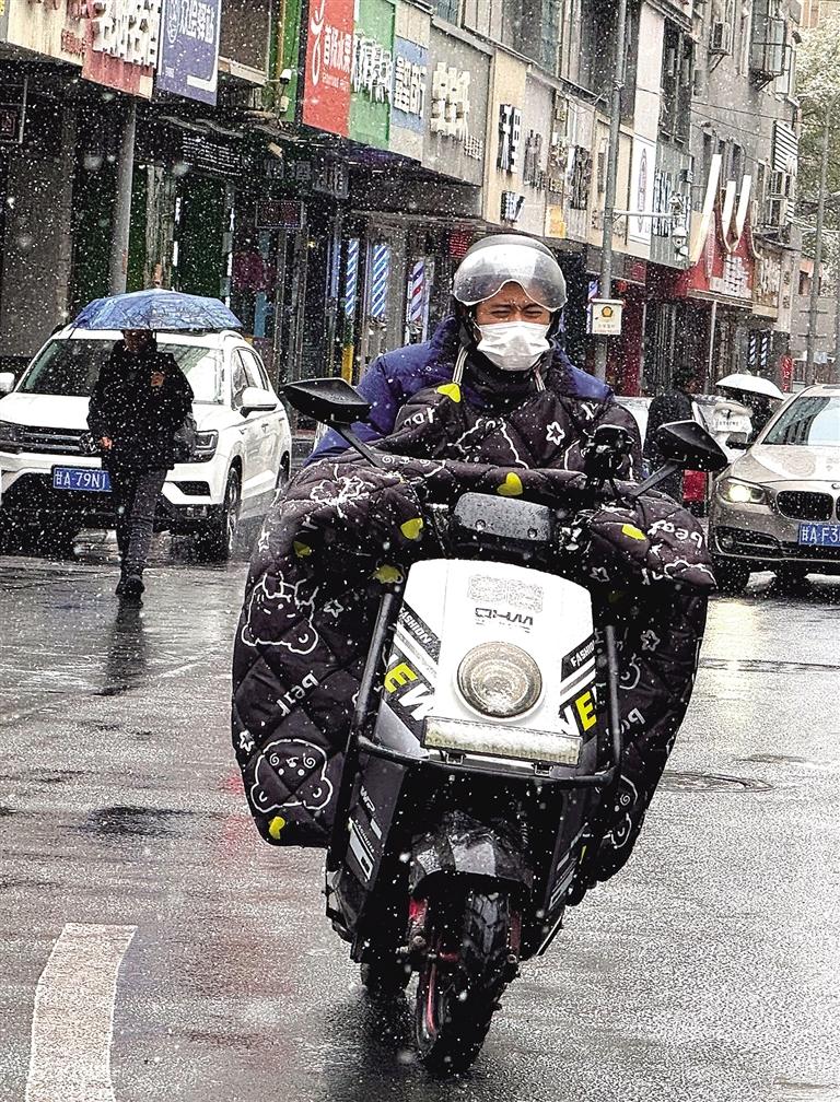 11月24日,一位市民在雪中騎行。蘭州日報社全媒體記者 甘霖 攝