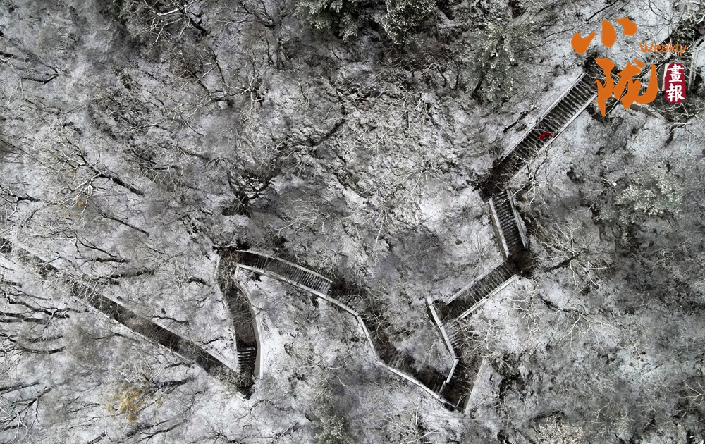 瑞雪灑落古道,籠住層林,覆蓋山巒,古剎白雪交相輝映,如夢似幻。