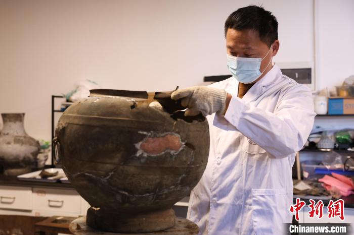 “青銅器和簡(jiǎn)牘不一樣,它需要相對(duì)干燥的環(huán)境來(lái)保存,由于墓室坍塌,很多出土的青銅器因受擠壓破碎、變形,還有很多銹跡和污物已經(jīng)掩蓋了該件器物的原本樣貌。”趙明輝表示,修補(bǔ)青銅器需要將一塊塊碎片進(jìn)行分類(lèi)、比對(duì)、拼接等,如有變形還需先整形,隨后將其焊接,是一件不折不扣的“精細(xì)活”。