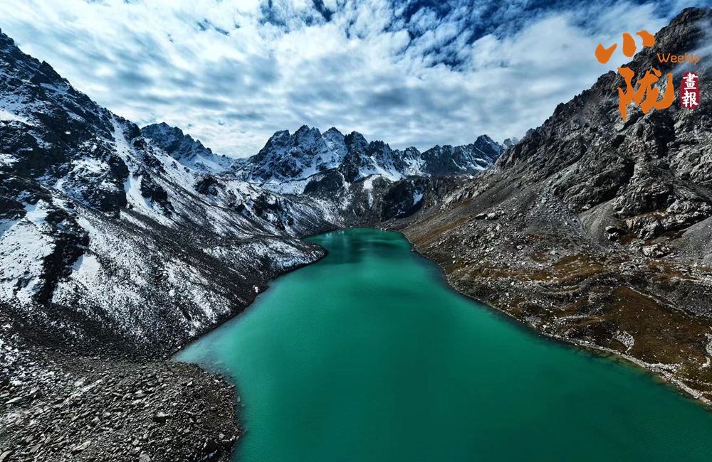 柴爾龍海是冰溝河的眼睛,四周雪山擁簇,湖水倒映著藍(lán)天和連綿的雪山,異常美麗。