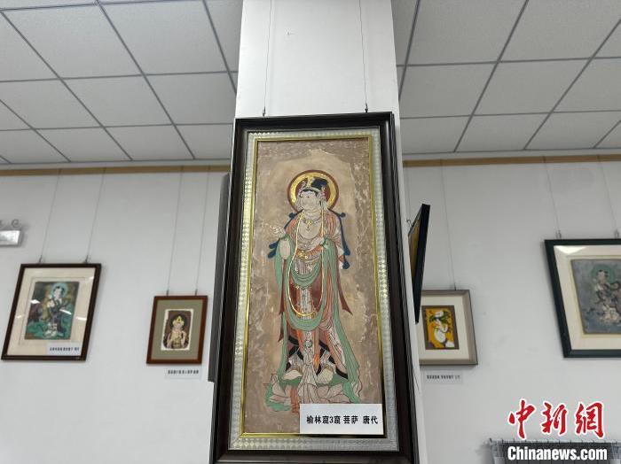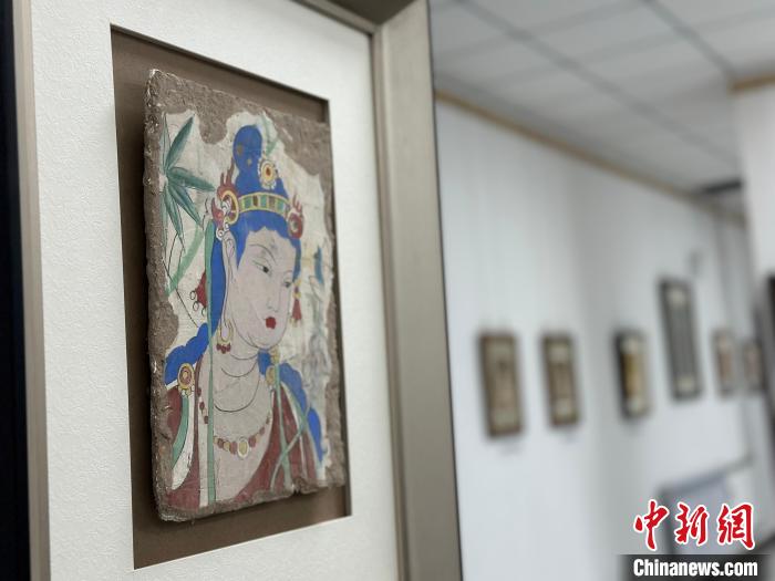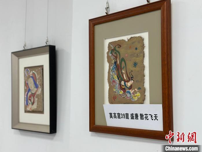 12月17日,由蘭州市七里河區(qū)委宣傳部、七里河區(qū)文體旅局聯合舉辦的“大漠孤陽映彩霞 敦煌神韻美如畫”新時代文明實踐主題活動暨敦煌巖彩畫書畫藝術展拉開帷幕。圖為展出的敦煌莫高窟壁畫題材巖彩畫。楊娜 攝