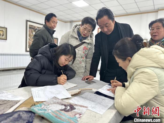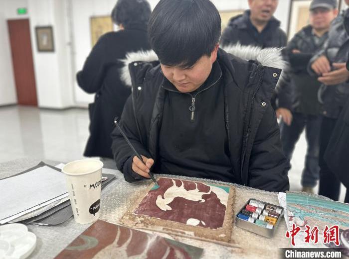 12月17日,由蘭州市七里河區(qū)委宣傳部、七里河區(qū)文體旅局聯合舉辦的“大漠孤陽映彩霞 敦煌神韻美如畫”新時代文明實踐主題活動暨敦煌巖彩畫書畫藝術展拉開帷幕。圖為繪畫愛好者現場學習繪制巖彩畫。楊娜 攝