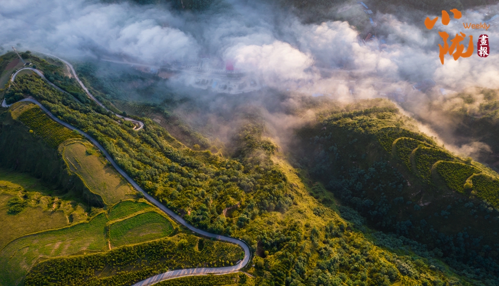 空中俯瞰,裊裊升騰的云霧、郁郁蔥蔥的山嶺、蜿蜒曲折的山路,不禁讓人感嘆:華池處處皆風景。