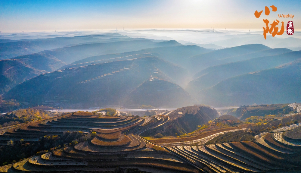 云霧如海浪般向四周漫延,呈現(xiàn)出別樣的霧海景觀,聳立在山川梁峁間的風力發(fā)電機隨風律動,成為當?shù)匾坏廓毺氐娘L景。