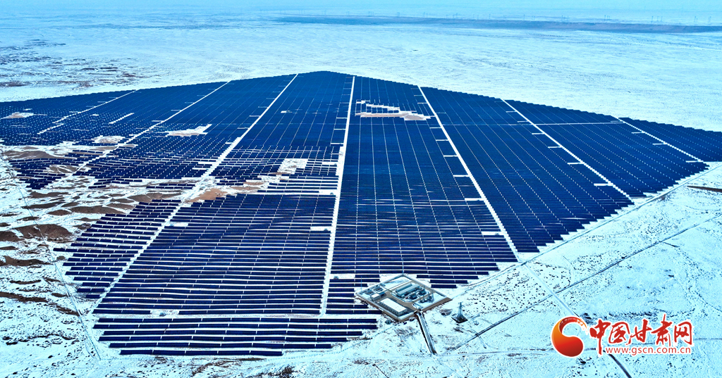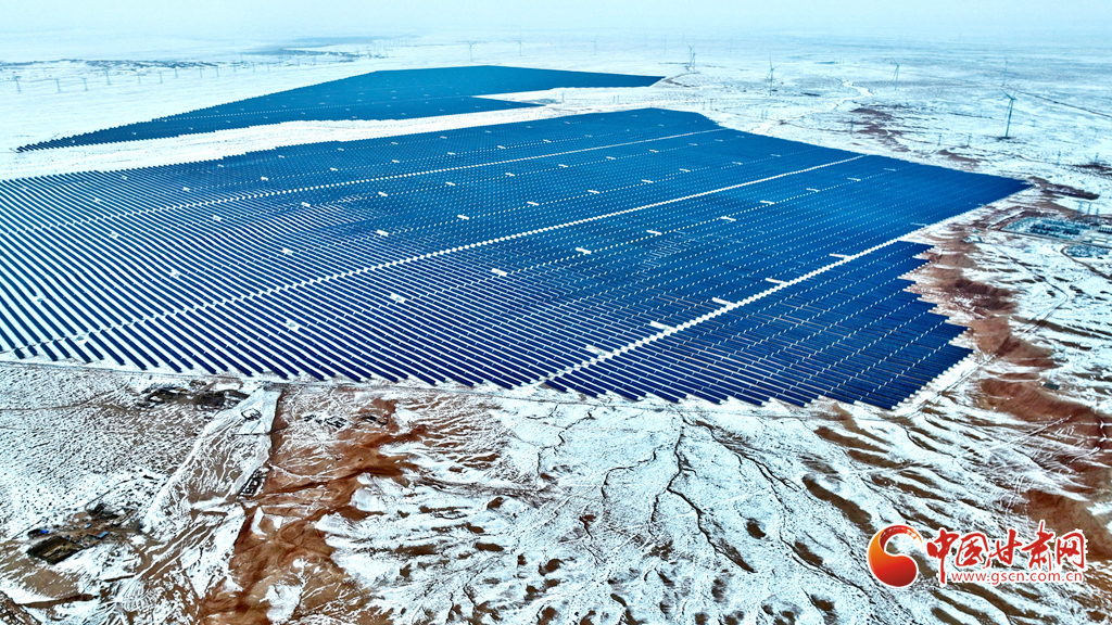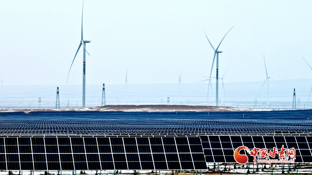 12月18日, 一場大雪過后,大漠深處的張掖市臨澤縣北部灘新能源產(chǎn)業(yè)園內(nèi),81.1萬千瓦光伏治沙光伏集陣和85萬千瓦風(fēng)力發(fā)電機(jī)組群,在防沙治沙的同時將光熱和風(fēng)力轉(zhuǎn)換為電能輸入國家電網(wǎng),推進(jìn)了“西電東送”輸電工程建設(shè)。