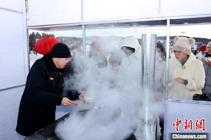 除了豐富的冰雪游樂項目,北極村七星廣場還設有非遺民俗文化展區(qū)和東北特色美食區(qū),讓游客們在參與冰雪活動的同時,還能欣賞樺樹皮畫、手工編織等具有地方特色的非物質(zhì)文化作品,品嘗江水燉江魚、鐵鍋燉大鵝等東北特色美食。