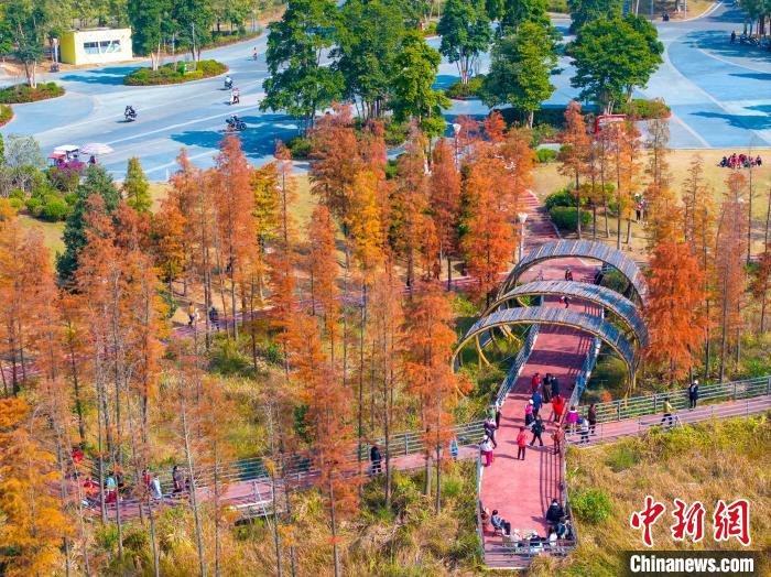 原標(biāo)題:廣西梧州:公園層林盡染冬景如畫