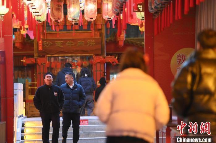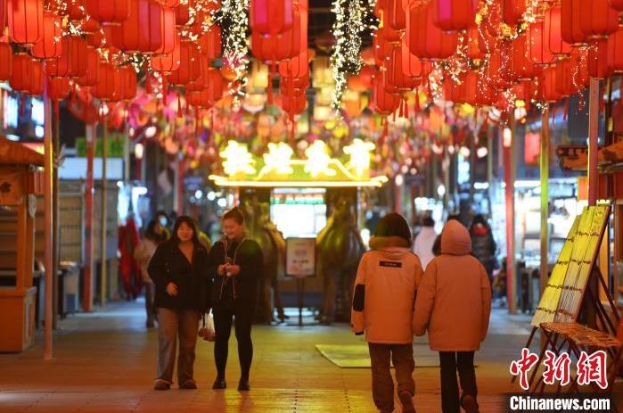 1月13日晚,甘肅敦煌夜市內(nèi),游人感受新春燈飾。據(jù)了解,從2024年12月1日至2025年2月28日,當?shù)伉Q沙山月牙泉、玉門關(guān)、敦煌雅丹世界地質(zhì)公園等景區(qū)對國內(nèi)外所有游客免門票,莫高窟門票實行半價優(yōu)惠,開放洞窟由8個增加至10個,為游客提供了更為豐富的觀賞內(nèi)容。中新社記者 李亞龍 攝