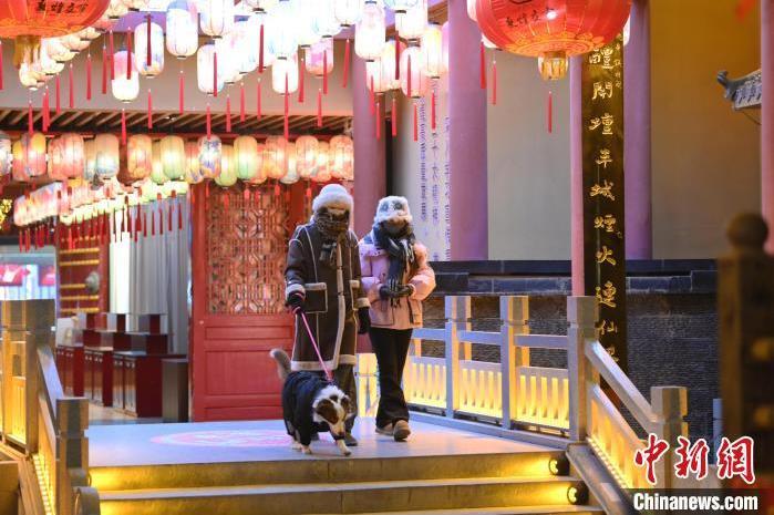 1月13日晚,甘肅敦煌夜市內(nèi),游人感受新春燈飾。中新社記者 李亞龍 攝