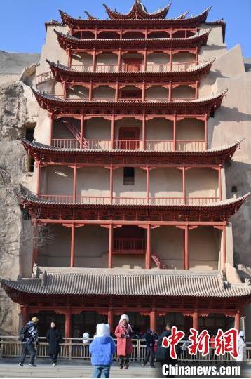 1月13日,甘肅敦煌莫高窟景區(qū)內(nèi),游人在莫高窟標志性建筑九層樓前拍照打卡。據(jù)了解,從2024年12月1日至2025年2月28日,當?shù)伉Q沙山月牙泉、玉門關(guān)、敦煌雅丹世界地質(zhì)公園等景區(qū)對國內(nèi)外所有游客免門票,莫高窟門票實行半價優(yōu)惠,開放洞窟由8個增加至10個,為游客提供了更為豐富的觀賞內(nèi)容。中新社記者 李亞龍 攝