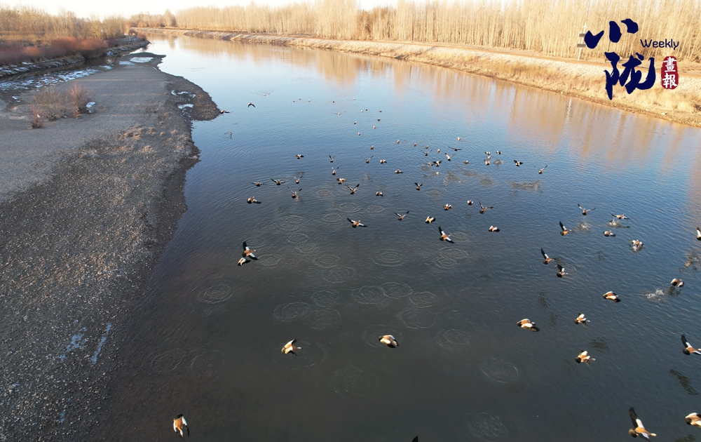 萬物復蘇,臨澤黑河濕地白天鵝、赤麻鴨等棲息覓食,構(gòu)成了一幅和諧的生態(tài)美景。