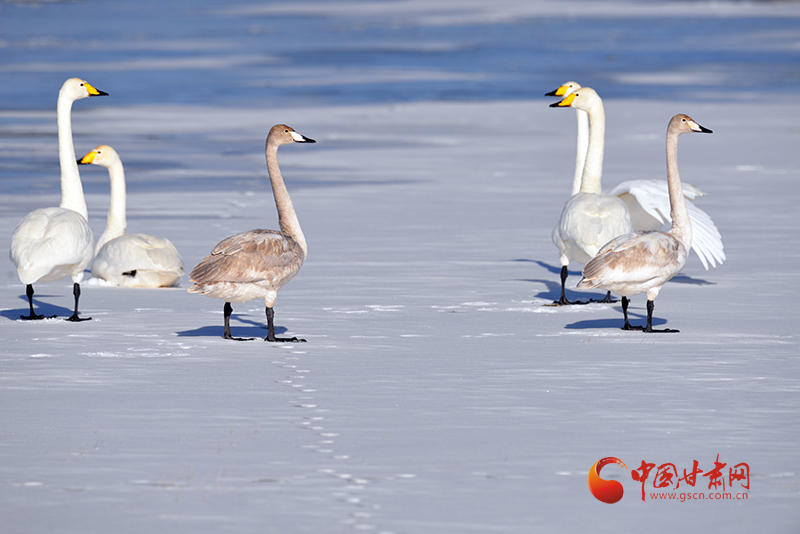 中國甘肅網(wǎng)2月7日訊(西北角·中國甘肅網(wǎng)記者 張慧雅 通訊員 何文麗 王建忠)近日,甘肅敦煌陽關(guān)國家級自然保護(hù)區(qū)管護(hù)中心工作人員通過視頻巡查,監(jiān)測到了11只越冬的國家二級保護(hù)野生動物——大天鵝。它們或在雪地里漫步,或梳理羽毛,姿態(tài)優(yōu)雅,為寒冷的冬日增添了一抹靈動的色彩。