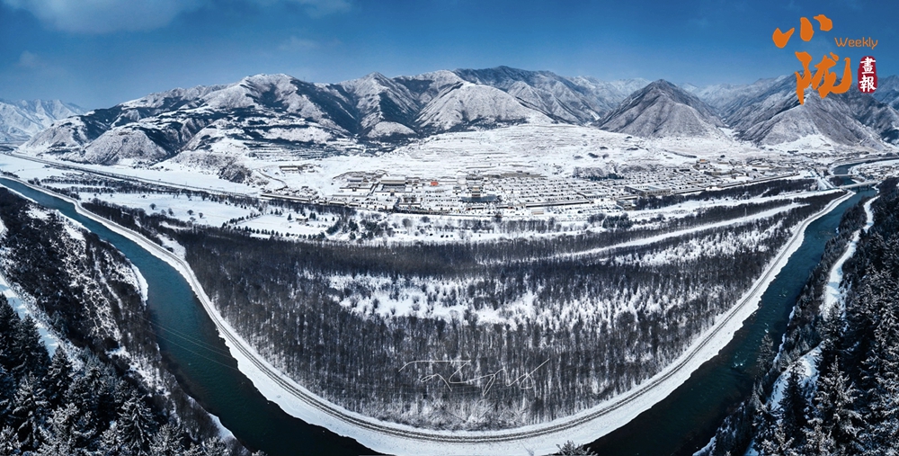 初春的碌曲縣,雪覆蓋了山林,覆蓋了藏寨,山川草場(chǎng)變成了純凈無(wú)暇的世界。