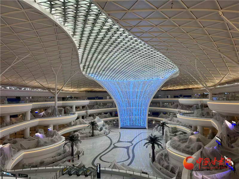 目前,口岸查驗(yàn)設(shè)施基本完成;綜合交通中心工程土建安裝、裝飾裝修工程全部完成,容納3520個停車位;信息大樓工程核心機(jī)房設(shè)備、弱電系統(tǒng)、裝修全部完成;機(jī)場業(yè)務(wù)用房、安檢護(hù)衛(wèi)用房、值班宿舍、國際國內(nèi)貨運(yùn)庫等附屬工程全面建成;綜合管廊、場區(qū)道路全線貫通;如意廣場、主進(jìn)場道路等場區(qū)綠化苗木基本栽植完成。