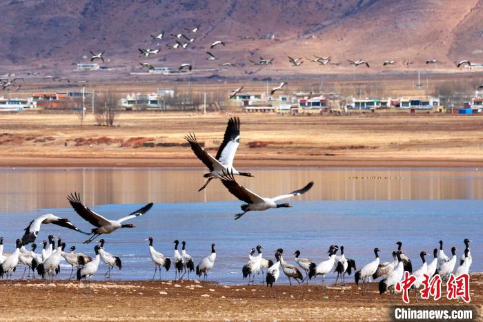 黑頸鶴是中國國家一級保護(hù)動物,是唯一生活、繁殖在高原的鶴類,被藏族民眾譽(yù)為“神鳥”。拉薩市林周縣、墨竹工卡縣等拉薩河流域是黑頸鶴的主要越冬地之一。近年來,西藏自治區(qū)多措并舉實施生態(tài)建設(shè)工程,黑頸鶴數(shù)量逐年遞增,目前西藏黑頸鶴數(shù)量超過萬只。