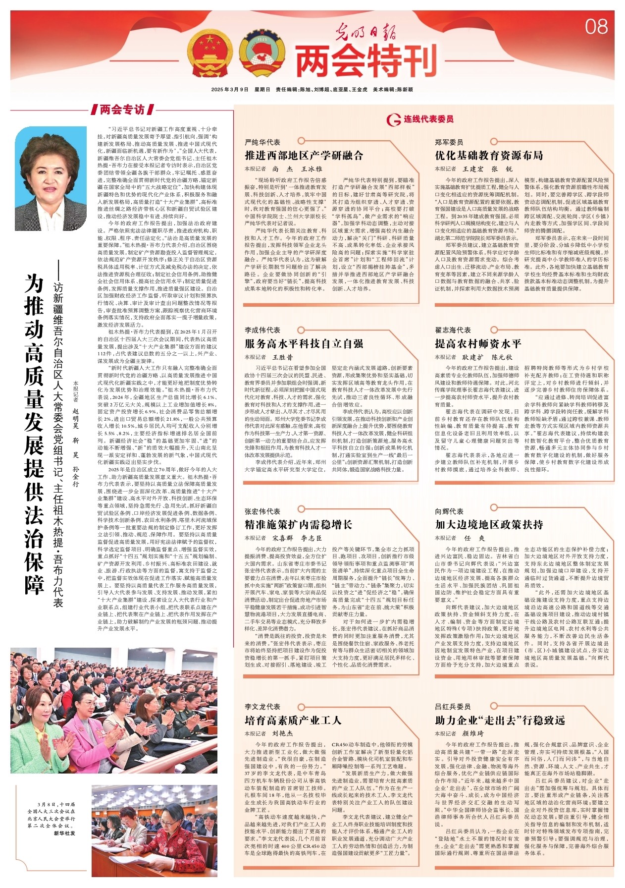 “現(xiàn)場聆聽政府工作報告倍感振奮,特別是聽到‘一體推進教育發(fā)展、科技創(chuàng)新、人才培養(yǎng),筑牢中國式現(xiàn)代化的基礎(chǔ)性、戰(zhàn)略性支撐’時,我對教育強國的信心更強了。”中國科學(xué)院院士、蘭州大學(xué)原校長嚴純?nèi)A代表對記者說。