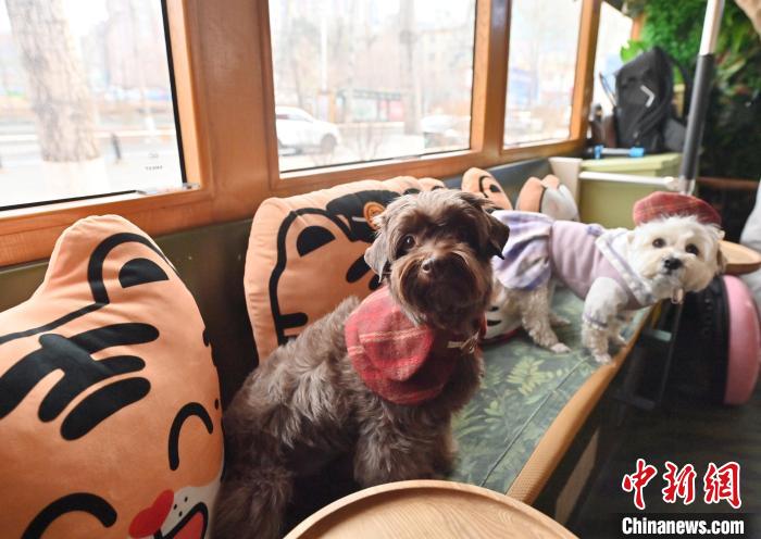 3月16日,吉林長春,寵物們?cè)谲噹麅?nèi)親密互動(dòng)。中新社記者 張瑤 攝