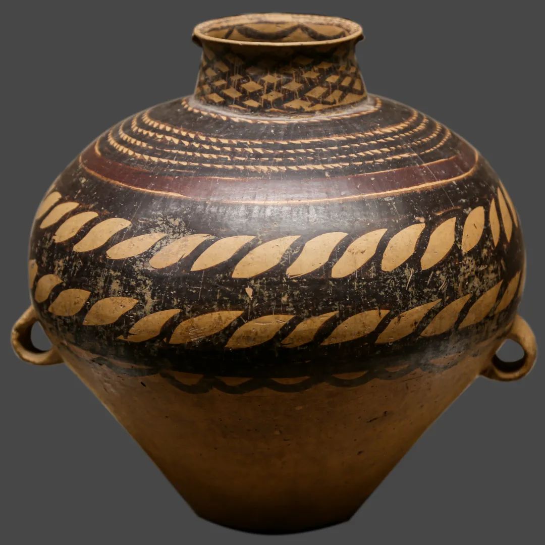馬家窯文化如黃河上游的基因庫,約公元前3300年萌芽于甘肅定西臨洮,承仰韶文化西進之火種,以洮河為血脈、黃土為肌理,在旋轉(zhuǎn)的陶輪間淬煉出黑彩翻涌的史前藝術(shù)密碼,成為西北大地孕育新石器文明的第一縷熾熱胎動。