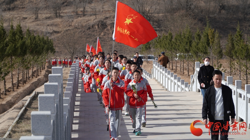 此次大型網(wǎng)絡(luò)思政公開課《永遠(yuǎn)不會忘記》由甘肅省委宣傳部、甘肅省委教育工委、甘肅省公安廳、甘肅省退役軍人事務(wù)廳共同主辦,線下開展“清明祭英烈 重走長征路”思政教育主題實(shí)踐活動(dòng)。內(nèi)容主要是圍繞“陜甘邊革命根據(jù)地創(chuàng)建、兩當(dāng)兵變、蘭州戰(zhàn)役、血戰(zhàn)高臺、會寧會師”等主題打造5條省級示范線路,蘭州、張掖、白銀、慶陽、隴南等地的2500余名學(xué)生同時(shí)開展徒步拉練、紅歌聯(lián)唱、黨史問答、祭奠瞻仰、參觀體驗(yàn)等活動(dòng)。