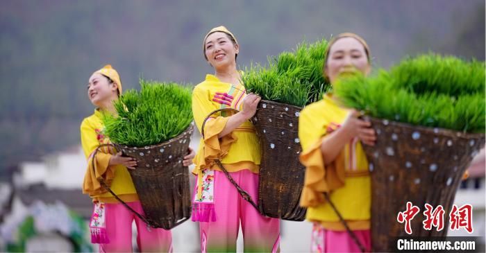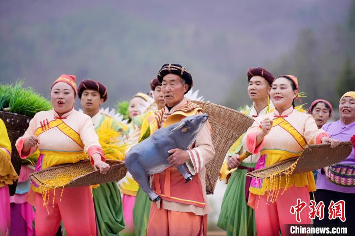 依托黎壩鎮(zhèn)層疊梯田的天然弧度與蒼翠山谷的立體聲場(chǎng),該劇將鎮(zhèn)巴民歌、陜南民俗等非遺元素融入山水實(shí)景。春之序曲《山歌迎賓》中,油菜花海間百人山歌陣,以原生態(tài)多聲部民歌編織迎賓盛景;夏之華章《綠的交響》里,非遺薅草鑼鼓與現(xiàn)代音樂(lè)碰撞出農(nóng)耕文明的力與美;秋之禮贊《金的節(jié)奏》在陽(yáng)光下呈現(xiàn)打連枷聲浪與稻浪共舞的豐收奇景;冬之情書《紅的濃情》則通過(guò)圍爐陜南說(shuō)唱,在吊爐光影間訴說(shuō)巴山兒女的熾熱情懷。