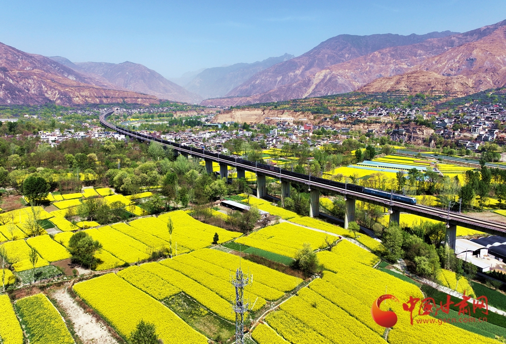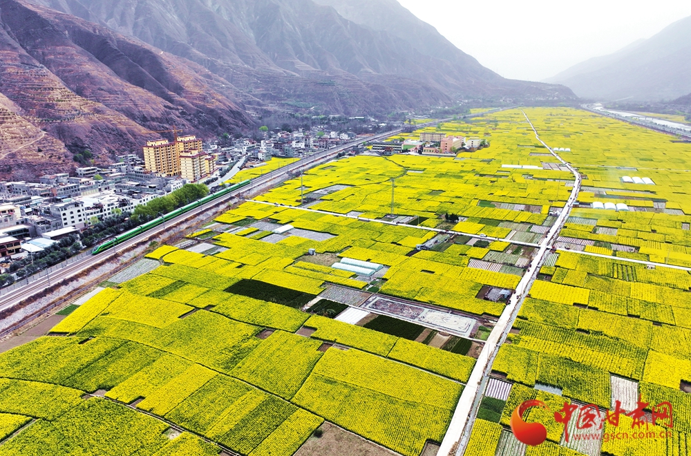 近日,隨著氣溫回升,武都、宕昌白龍江沿岸的油菜花競(jìng)相綻放,迎來(lái)最佳觀賞期,蘭渝鐵路列車在花海中穿梭,宛如一幅絕美的春日畫卷。