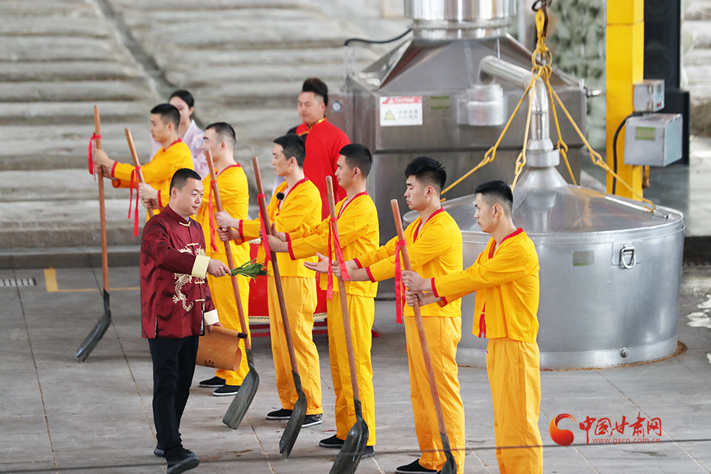 開釀儀式盡顯古樸,釀酒傳承人身著吉服,誦讀酒經(jīng)與祖訓(xùn):“德不立者不釀,心不誠者不釀……”并撒糠祈福,敬謝酒祖,隨著開釀聲起,酒匠們有條不紊開動,一锨一鏟,一甑一耙,配合默契,仿佛時(shí)光倒流至千年前。
