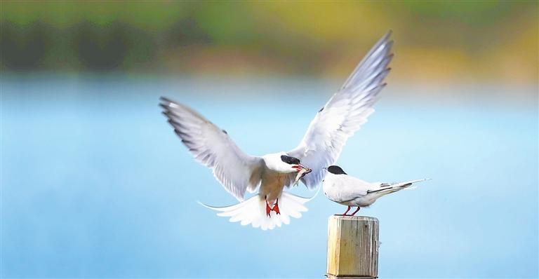 張掖黑河濕地的普通燕鷗。