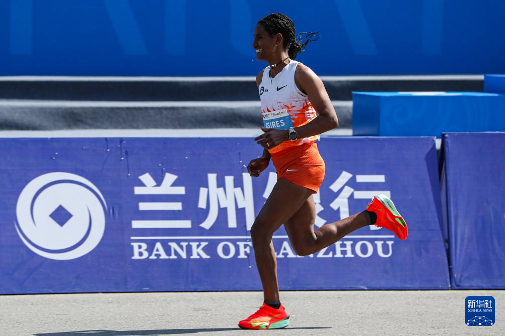 5月25日,埃塞俄比亞選手阿西雷斯在比賽中沖刺。新華社記者 郎兵兵 攝