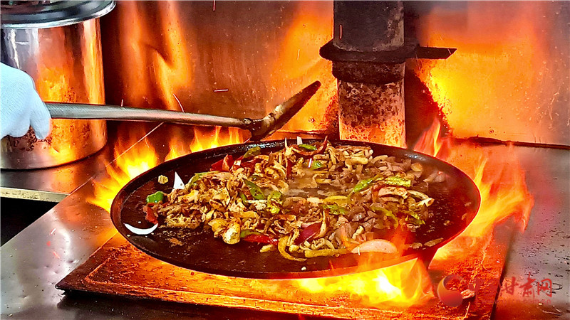 而隨著山丹炒撥拉名氣越來越大,這款圍爐而坐的美食成為越來越多游客的心頭好。王金秀說,以前她們擺地攤賣,雖然條件艱難,但是食客從來不挑剔?,F(xiàn)在時代進步了,她也有了自己的示范店,在寬敞明亮的新店,變的是環(huán)境,不變的依然是滋啦冒油的熱情,和朋友圍坐的愜意。對于這種用餐氛圍感拉滿的美食,作為傳承人他們也非常在乎食客的體驗感,所以炒制過程全程開放,讓食客看著大火淬煉的美食一步步成型。
