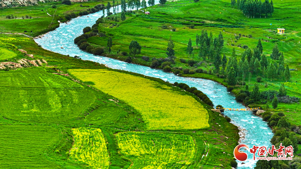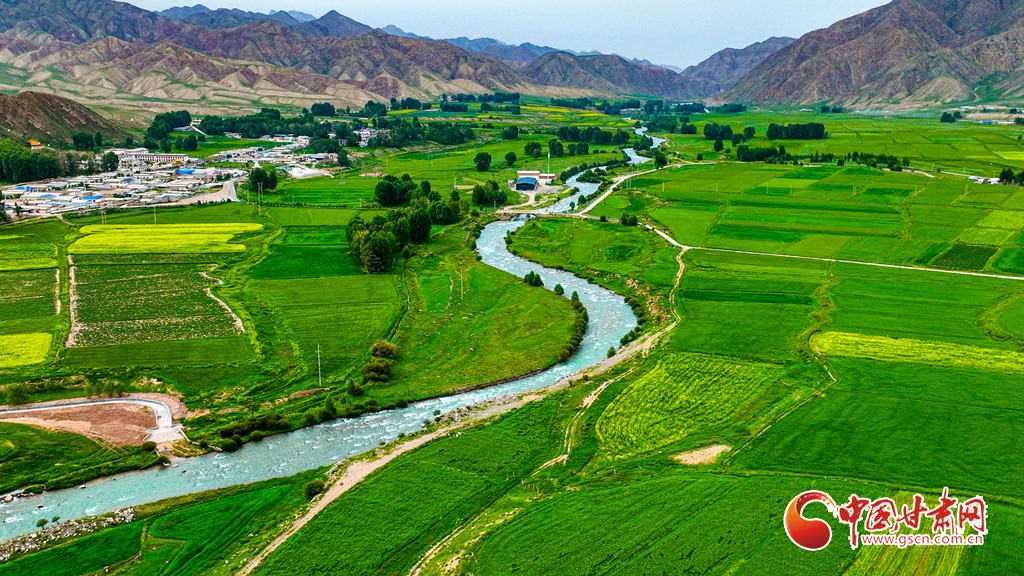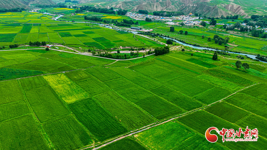 7月14日,一場(chǎng)小雨過(guò)后,張掖市肅南裕固族自治縣皇城鎮(zhèn)泱翔片區(qū),萬(wàn)畝麥田泛黃、油菜花盛開如金。微風(fēng)吹拂,麥浪翻涌花香浮動(dòng)。遠(yuǎn)眺祁連山巍峨聳立,近觀民居錯(cuò)落有致,構(gòu)成一幅和諧的畫卷。