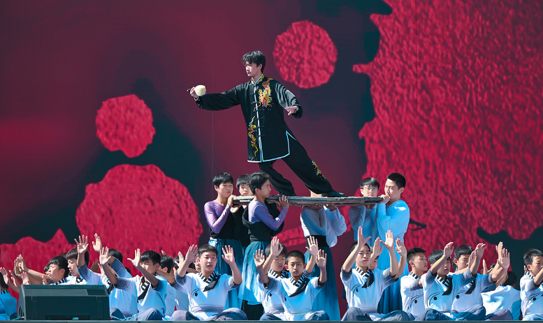 活動伊始,開場片《歡迎乘坐崆峒號》以“環(huán)西部火車游·崆峒號”平?jīng)雎糜螌A袨殪`感,通過跨時空對話串聯(lián)崆峒山古今脈絡(luò),拉開活動序幕?,F(xiàn)場,街舞與崆峒武術(shù)團(tuán)體合作的《武韻崆峒》展現(xiàn)武術(shù)與現(xiàn)代肢體藝術(shù)新生機(jī);笛子演奏與武術(shù)冠軍聯(lián)袂呈現(xiàn)的《崆音劍影》打造“可聽的武術(shù)”沉浸式體驗;30人陣容的江蘇武協(xié)女子太極拳團(tuán)體演繹《鶴起崆峒》,詮釋武術(shù)新功用;國風(fēng)歌手與秦腔表演藝術(shù)家合作的《秦韻長歌》,展現(xiàn)“武戲同源”的多元魅力。