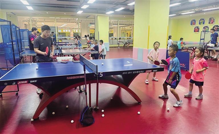 國芳G99一家乒乓球培訓(xùn)機(jī)構(gòu)內(nèi)每張球桌前都有教練指導(dǎo)學(xué)員練習(xí)。“暑期班從7月10日持續(xù)至8月24日,針對零基礎(chǔ)學(xué)員推出一對一火箭課培訓(xùn)。目前,教練時(shí)段全滿員,報(bào)班需要提前預(yù)約。”該機(jī)構(gòu)負(fù)責(zé)人介紹,機(jī)構(gòu)共推出苗子班、啟蒙營、基礎(chǔ)營等5種班型,按年齡和水平劃分,價(jià)位為1480元至2980元。4至6歲孩子可參加一對多的苗子班和啟蒙營,大一些的孩子則可參加基礎(chǔ)營、提高營進(jìn)行對打訓(xùn)練。