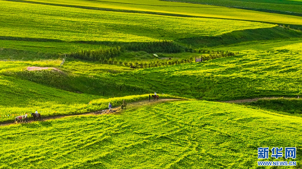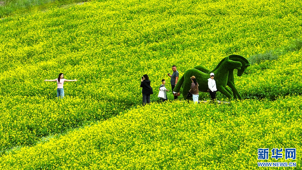 連日來,位于祁連山下的甘肅省張掖市民樂縣扁都口景區(qū)萬畝油菜進入盛花期。金黃的油菜花海與草原綠野相連,空氣中彌漫的淡淡花香,醞釀山川,醉了游人。新華網(wǎng)發(fā)(王將 攝)