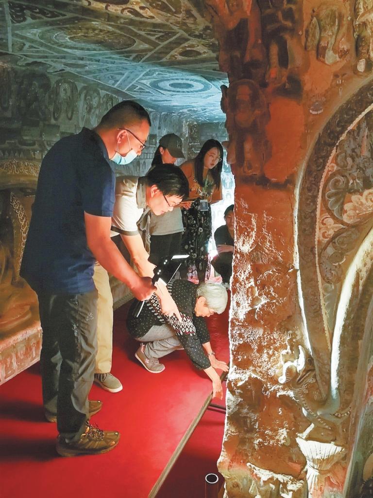 考古報告此前多年難以出爐還與技術(shù)條件不成熟有關(guān)。“最早的時候,我們誰見過電腦呀,繪圖用的是‘小平板’,測量用的是垂球、三角板。測量的人爬上爬下,繪圖的人說往左往右……又慢又不準(zhǔn)。洞窟不像我們住的房子那么四四方方,洞窟里不是壁畫就是塑像,又不能搬動,測量先就是個大難題。”直到近些年,三維激光掃描測量儀器問世、高精度數(shù)據(jù)采集、數(shù)字?jǐn)z影、用電腦軟件精確繪圖等技術(shù)成熟,才使全面、高效、非接觸地獲取洞窟三維數(shù)據(jù)、高清圖像并進行虛擬拼合與重建成為可能。