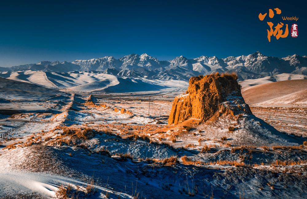 潔白的馬牙雪峰在遠(yuǎn)處閃爍著冷冽的光芒,巍峨而孤高;而眼前,明漢長(zhǎng)城的夯土墻體在陽光下泛著溫暖的土黃,宛若大地的血脈。這一冷一暖在此相遇——一端是自然雕琢的冰晶詩(shī)篇,一端是人類寫就的黃土史詩(shī),共同構(gòu)成一幅跨越千年、連接天人的壯闊畫卷。