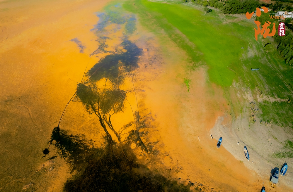 潮水褪去,灘涂勾勒出極似樹根分支的有機形態(tài)——主脈粗壯有力,次脈隨之伸展,末梢則細密如須根,整片灘面仿佛成為一棵倒生巨樹的根系拓印,靜默中透出磅礴的地質美感。