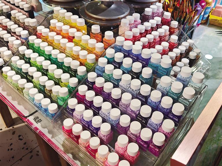 “我們主要做拼豆、銀飾DIY和陶藝,也有石膏彩繪、串珠、奶油膠這些項(xiàng)目,基本上當(dāng)下流行的手工都能體驗(yàn)到。”店內(nèi)工作人員告訴記者,一站式、多樣化的體驗(yàn),更符合現(xiàn)在消費(fèi)者的需求,不用跑多家店,就能玩遍多種玩法。