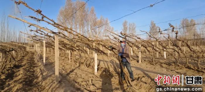 敦煌萬畝葡萄枝蔓出土上架